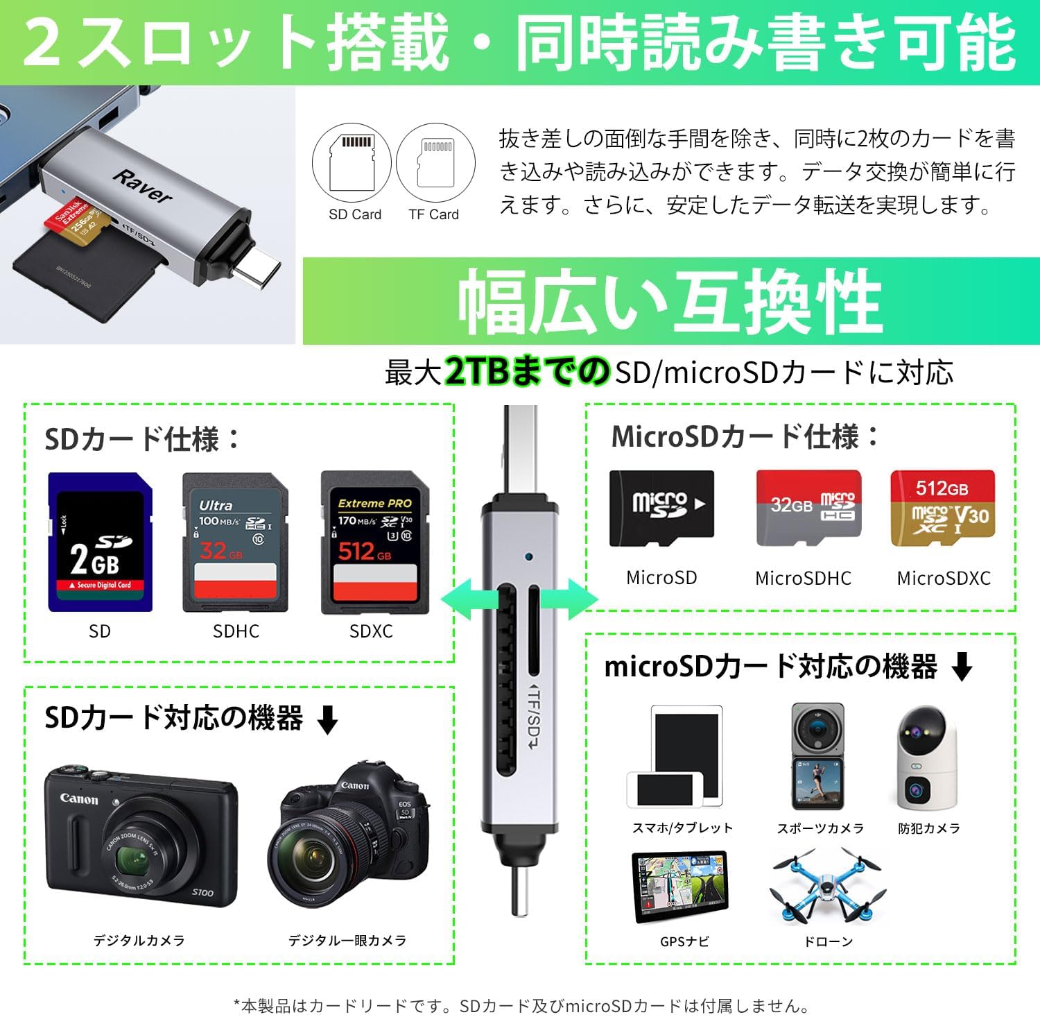 ※本製品はカードリーダーのみとなります。画像に掲載しているメモリカードなどは付属しません。