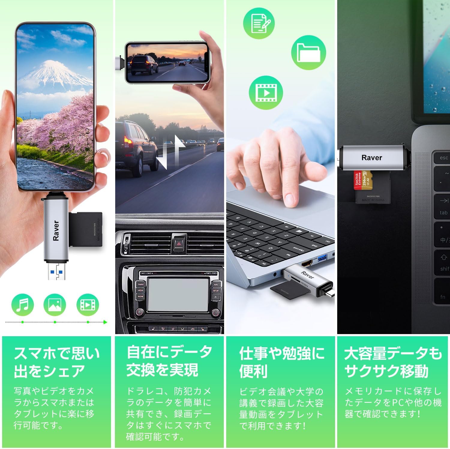 容量不足 写真転送 動画移動 データ移行 USB3.2 Gen1 USBマルチカードリーダー GPSナビ 外付け MicroSDカード 超高速