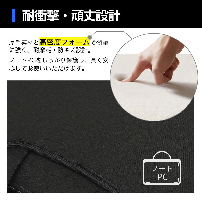 厚手素材と高密度フォームで衝撃に強く、耐摩耗・防キズ設計。