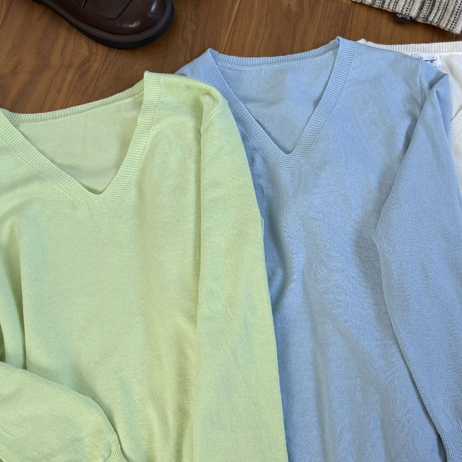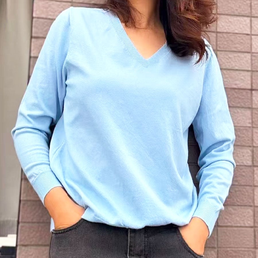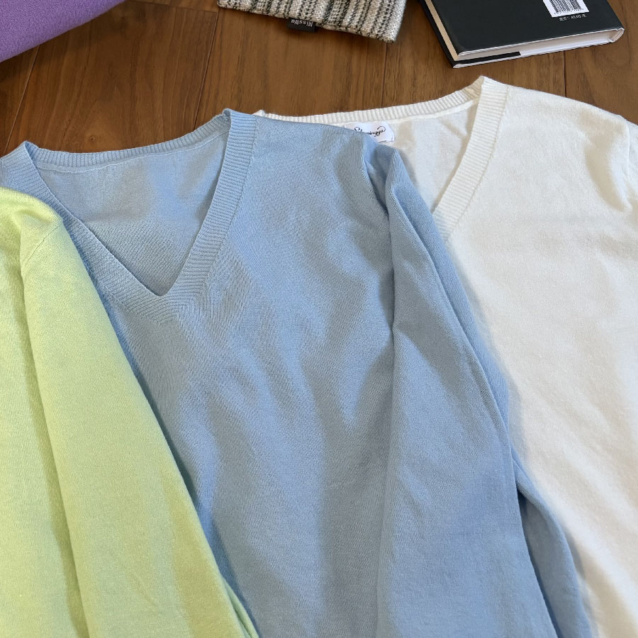着ぶくれしない重ね着にお勧め薄手のvネックカットソーが登場。