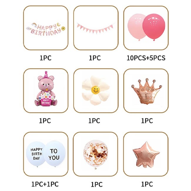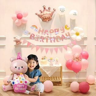 - 女の子が喜ぶ!ベア&お花のバスデーバルーン&ガーランドセット