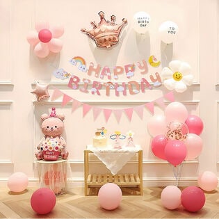 お手軽に部屋やお店などを華やかに飾り付けできるバスデーバルーン&ガーランドセット!