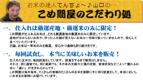 ※お米に賞味期限はありませんが、徐々に劣化(酸化→古米化→食味低下)します。お受け取り後はできるだけお早めに(涼しいところに保管して夏場で約2週間ぐらいで)お召し上がりください。