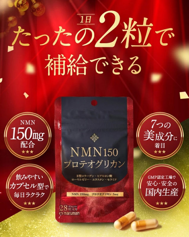 【日替わり数量限定】[3袋セット(1袋あたり28粒)] maruman (マルマン)/NMN150プロテオグリカン | 健康で若々しい毎日をサポートする注目成分をたっぷり配合!ハリのあるい生活を!