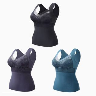 - 【3色セット/Lサイズ(Sサイズ相当)】締め付けない暖かい裏起毛カップ付きタンクトップ
