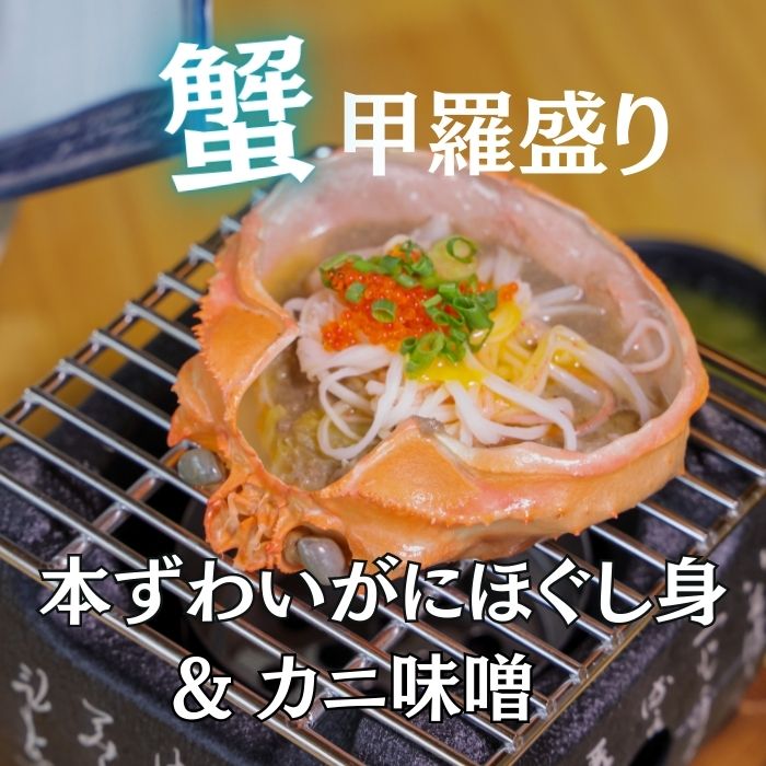 ●カニの甲羅に、「本ズワイガニのカニ身」と「ベニズワイガニの蟹味噌」をたっぷりのせた逸品です。