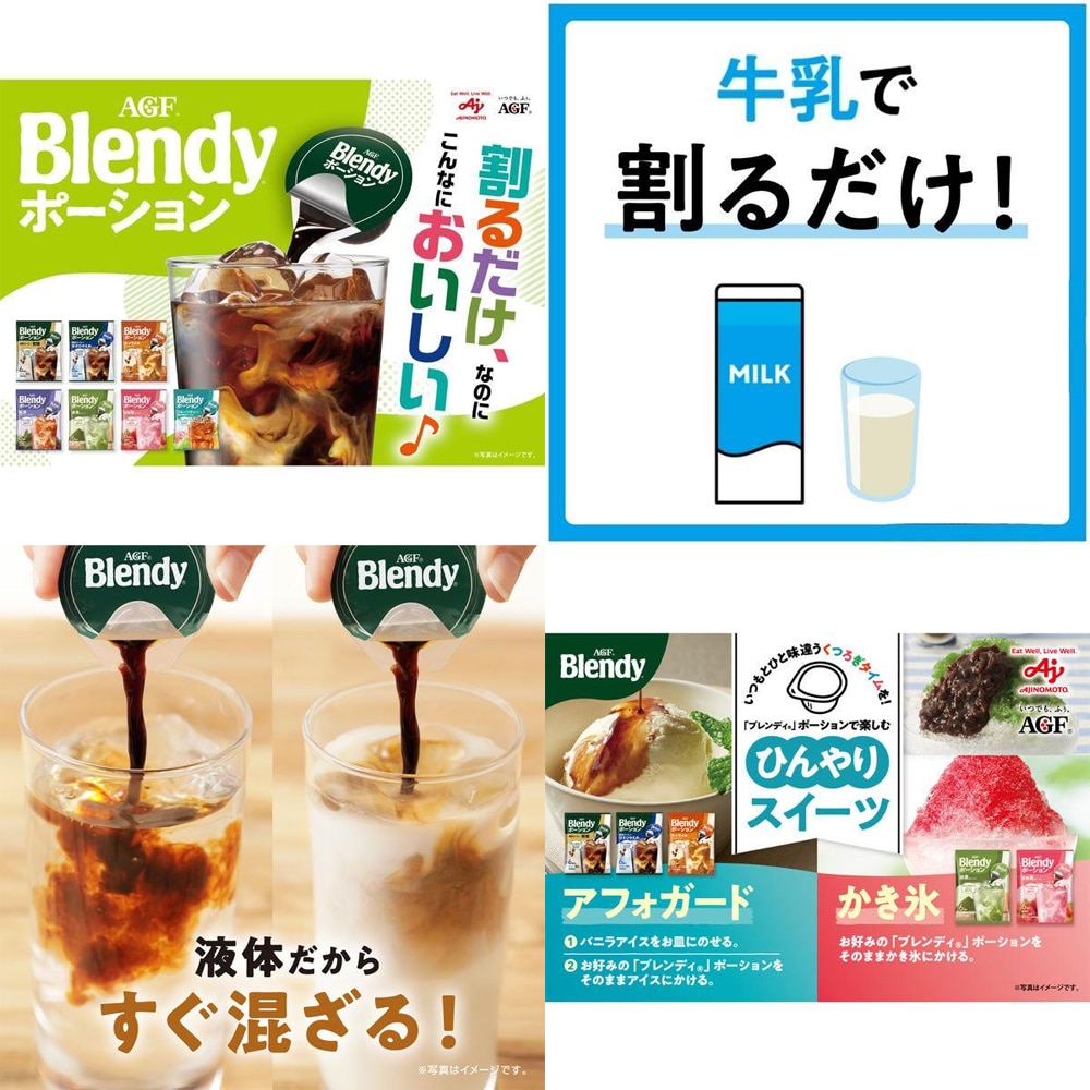 素材を1杯にぎゅっと凝縮しているので、ミルクや水をそそぐだけで簡単に、コクのあるアイスカフェオレやアイスコーヒーなどバラエティ豊かな味わいが楽しめるポーションタイプの希釈飲料です。