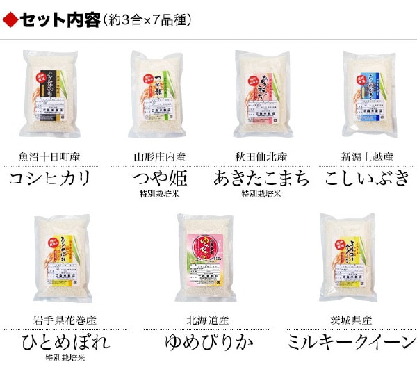 こめ問屋の店長が厳選した7産地7品種のお米をセットにしました!!