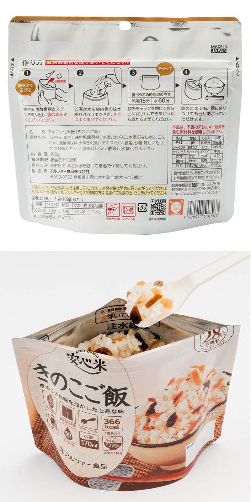 【賞味期限間近】 アルファー食品 安心米 きのこご飯 50袋入×2 【2箱】 アルファ化米 | 長期保存アルファ化米 調理はお湯または水を注ぐだけ(熱湯で15分、水(15℃)で60分)