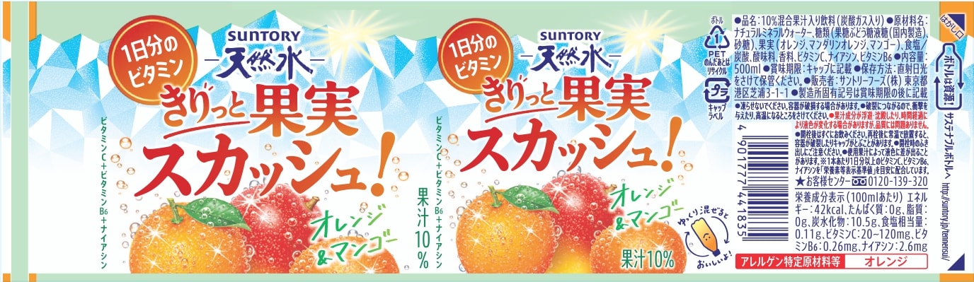 - サントリー天然水 きりっと果実スカッシュ! オレンジ&マンゴー 500ml×48本