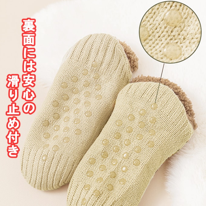 滑り止めがついててとても暖かく履きやすい。以前Lサイズで大きかったのでMサイズを購入しました。足首までなので脱着しやすくて便利。