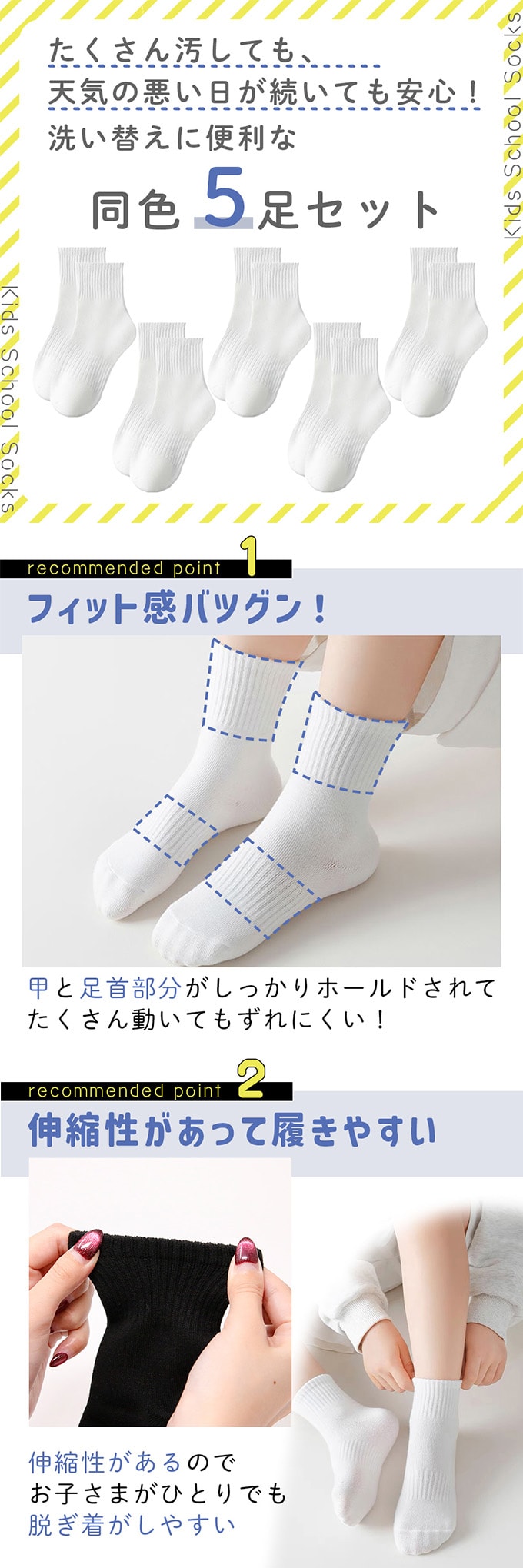 - [ホワイト/M(15cm~17cm)] 子供用スクールソックス【5足セット】