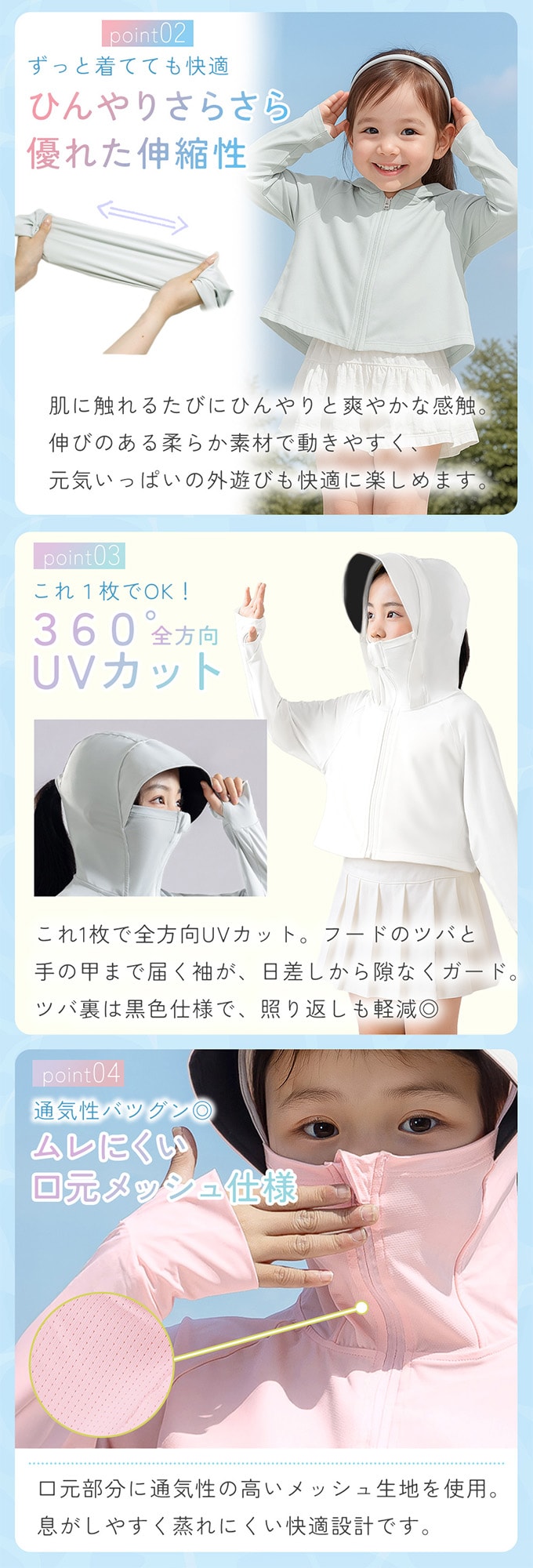 - [グレー][Mサイズ]キッズ 日除けパーカー