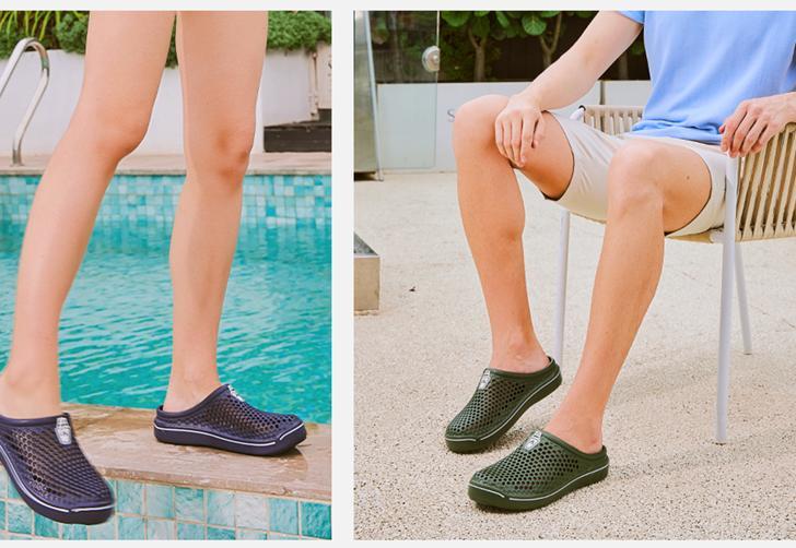 「使用シーン」:シンプルなデザインにより、室内にを限らず、外出への使用性も高い「サンダル」