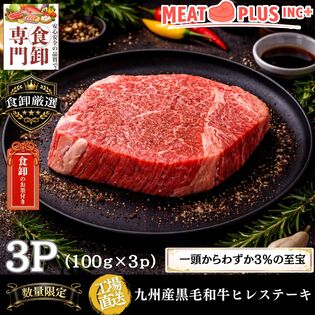【計300g/100g×3枚】九州産黒毛和牛ヒレステーキ