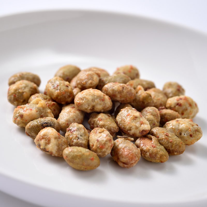 オリジナルの味噌と唐辛子で仕上げた大豆は和風のピリ辛味がやみつきになると大好評。