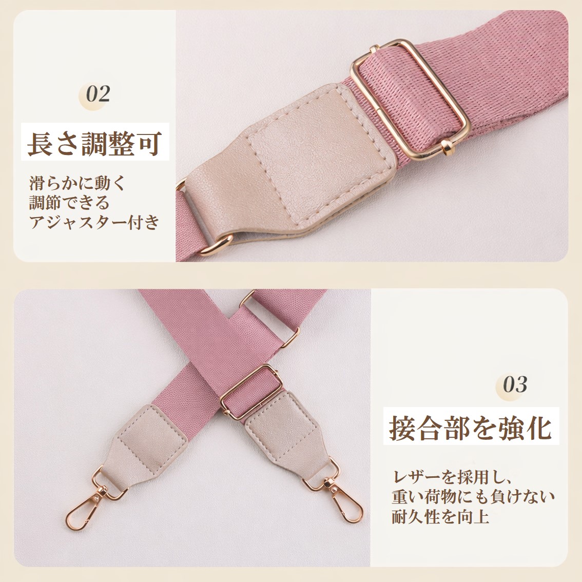 ファッションに合わせて、肩掛けや斜めがけの2WAYで楽しめる。