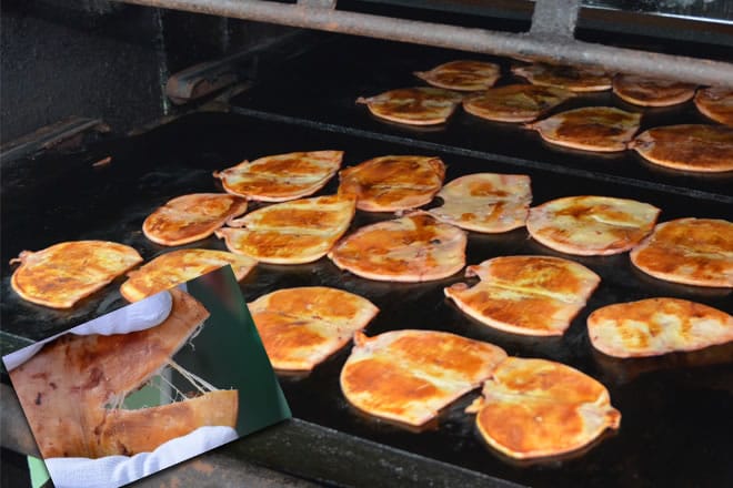 伝統の鉄板焼き機で、じっくりと丁寧に焼き上げることにより
