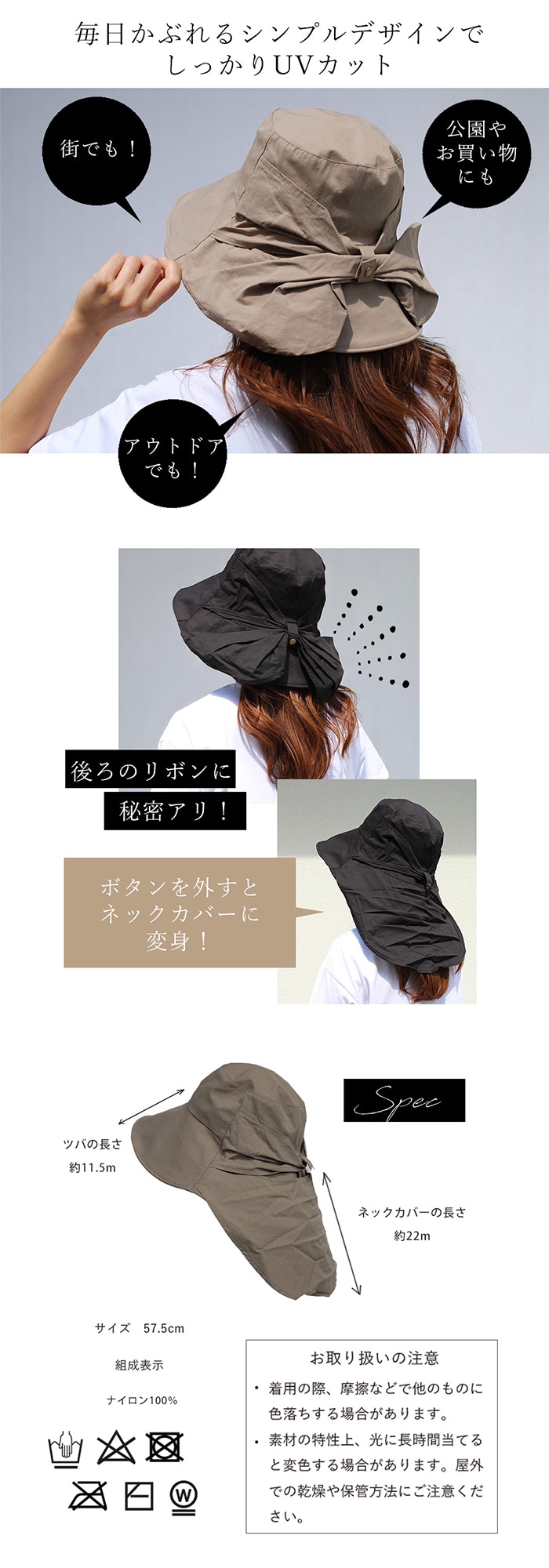 接触冷感素材! バックリボンがシェードに変身するハット かわいく日差しをよけて!どこに行くのも携帯できる軽さ