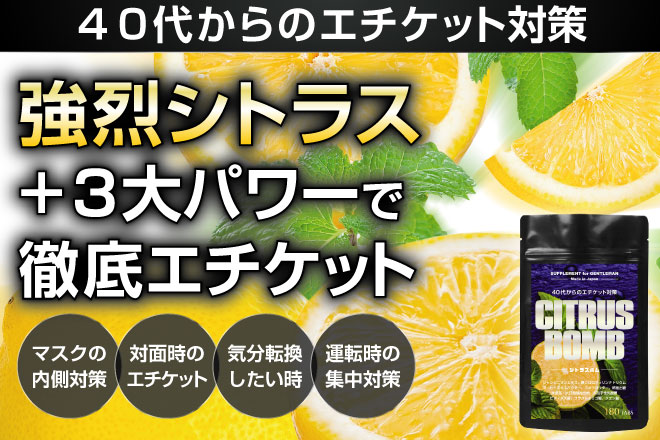 【日替わり数量限定】40代からのエチケット対策 シトラスボム 大容量約6ヶ月分180粒 | 【40代以降の方に!】強烈シトラス+内側ケア成分を超濃縮した最新エチケットサプリ