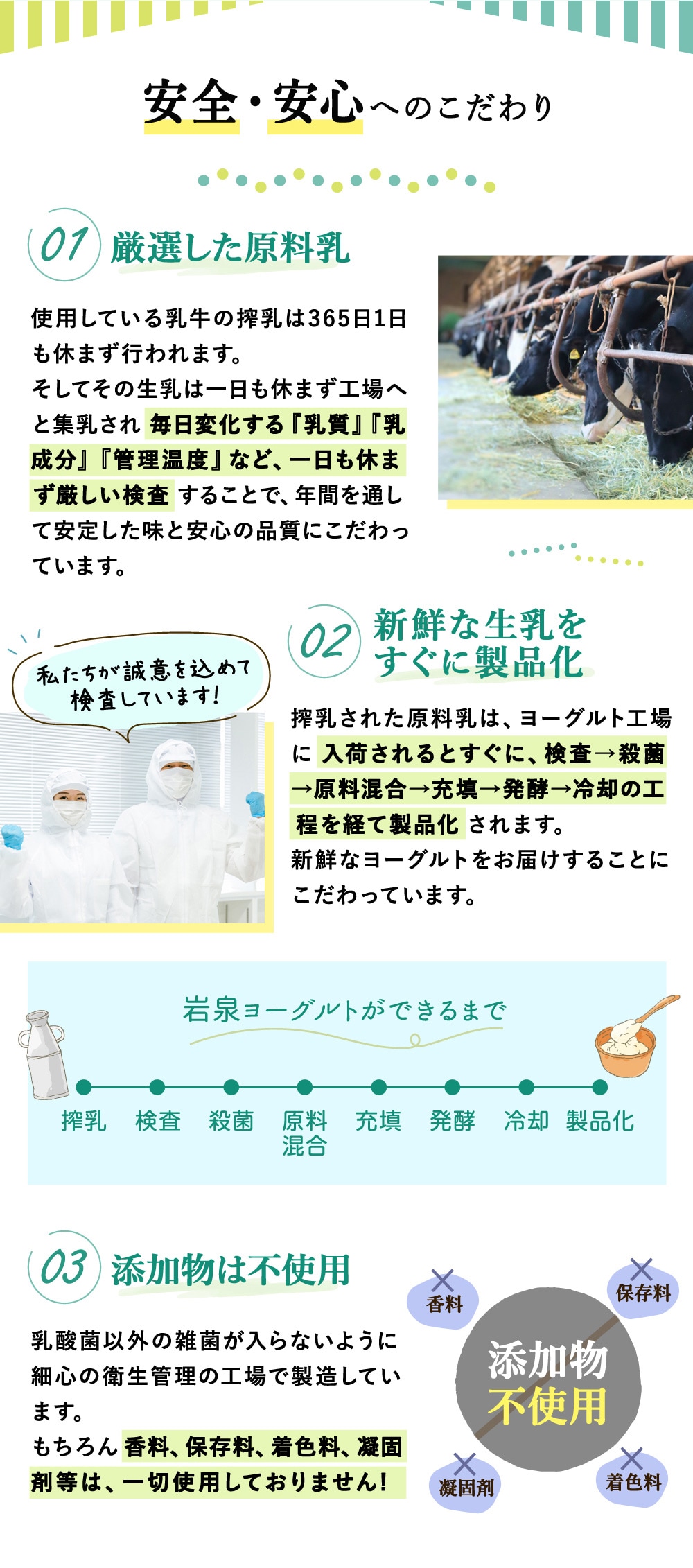 ・岩手県で酪農の歴史が一番古い岩泉町産の生乳と、厳選した岩手県産の生乳を使用。