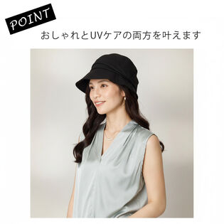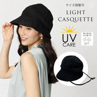 - 【キャスケット UVケアハット】<ブラック>取り外し可能なあご紐つき