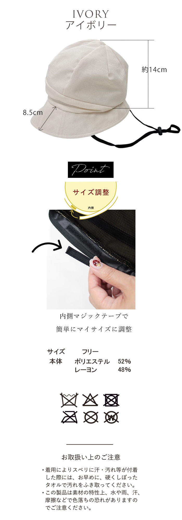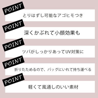 小顔効果も期待できます。軽くて涼しい素材で、カジュアルにもエレガントにも合わせやすくお出かけにマストなアイテムです。