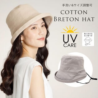 - 【ブルトンハット UVケアハット】<ベージュ >取り外し可能なあご紐つき