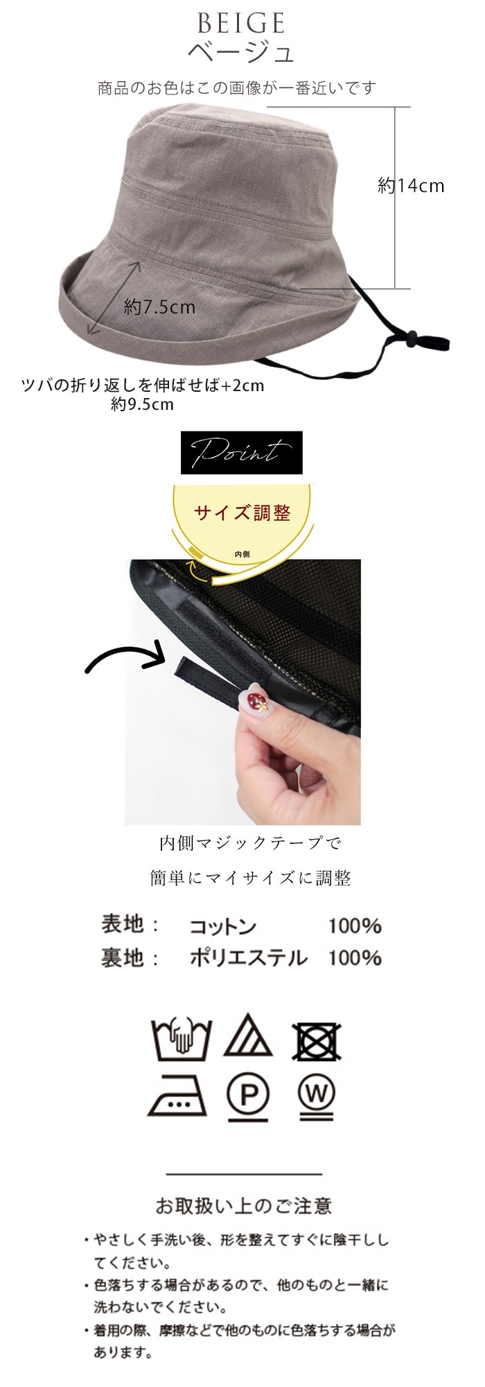 【ブルトンハット UVケアハット】<ベージュ >取り外し可能なあご紐つき | ツバを2段階に調節できる 深くかぶれて日差しをカット!おしゃれとUVケア両方を叶えます