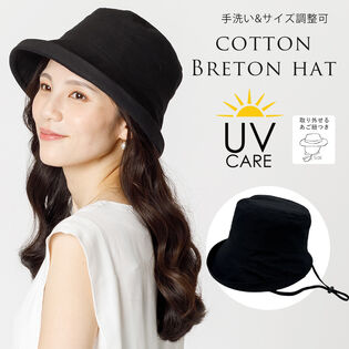 - 【ブルトンハット UVケアハット】<ブラック>取り外し可能なあご紐つき
