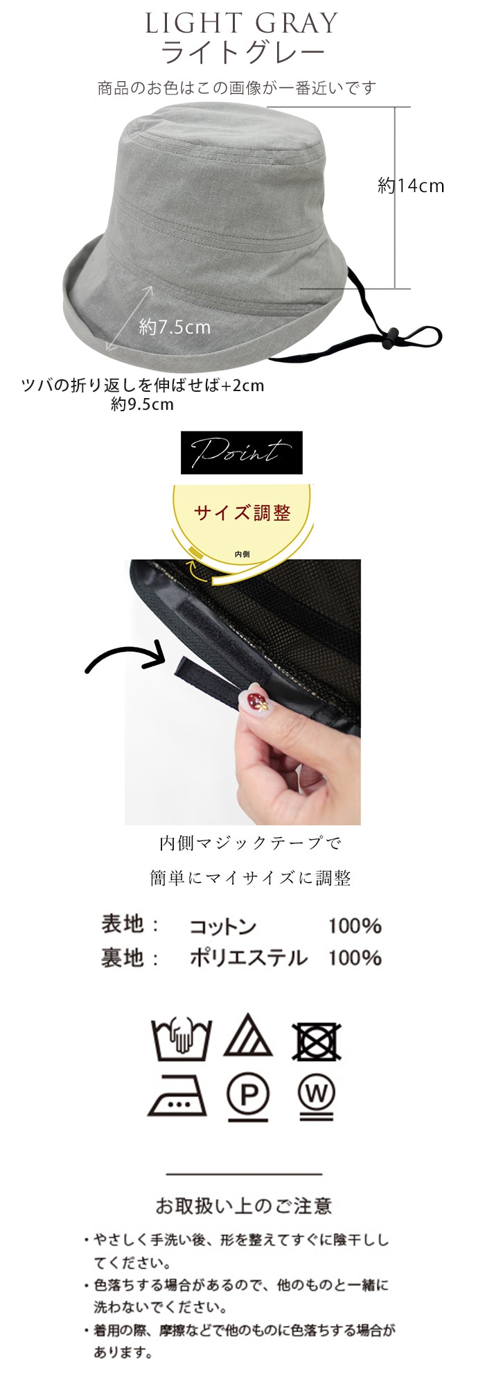 【ブルトンハット UVケアハット】<ライトグレー>取り外し可能なあご紐つき | ツバを2段階に調節できる 深くかぶれて日差しをカット!おしゃれとUVケア両方を叶えます