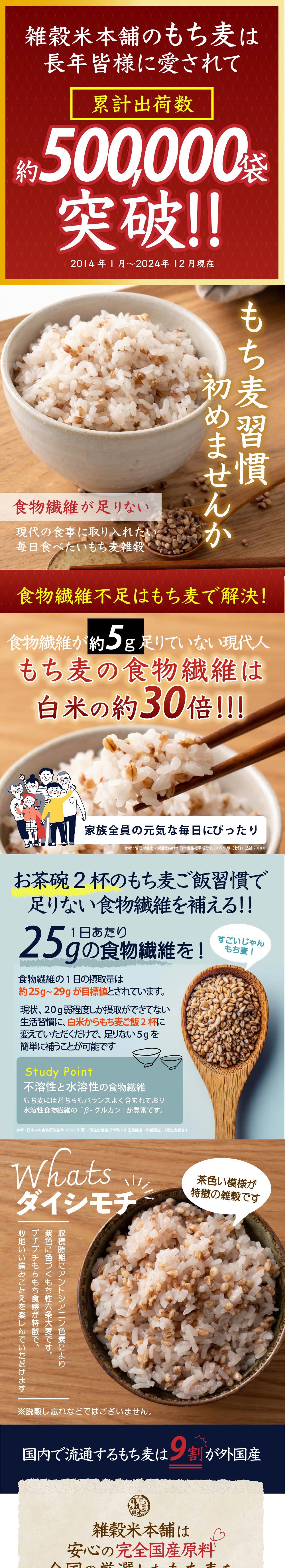 【日替わり数量限定】【800g(400g×2袋)】国産もち麦(ダイシモチ) (雑穀米・チャック付き) | もち麦(ダイシモチ)水溶性食物繊維のβグルカンで体を内から整える!炊飯時にご飯に混ぜるだけ