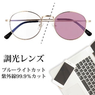 - 【調光レンズ】<ゴールド/クリア-バイオレット>ブルーライトカット UVカット99.9% QL-51