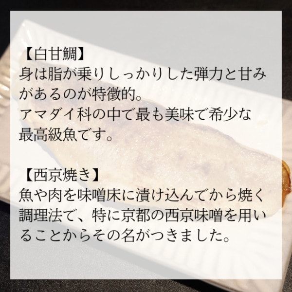 ★幻の高級魚「白甘鯛」を西京漬けにしております。高級料亭の味です。
