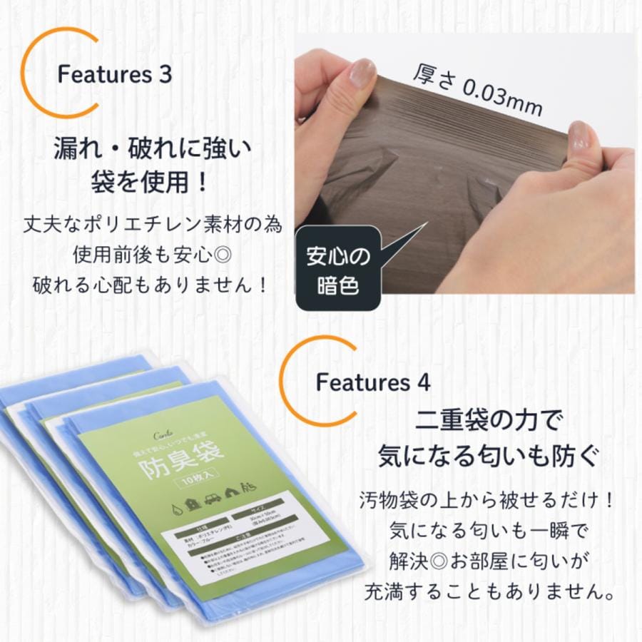 防臭袋、汚物袋、使い捨て手袋:PE