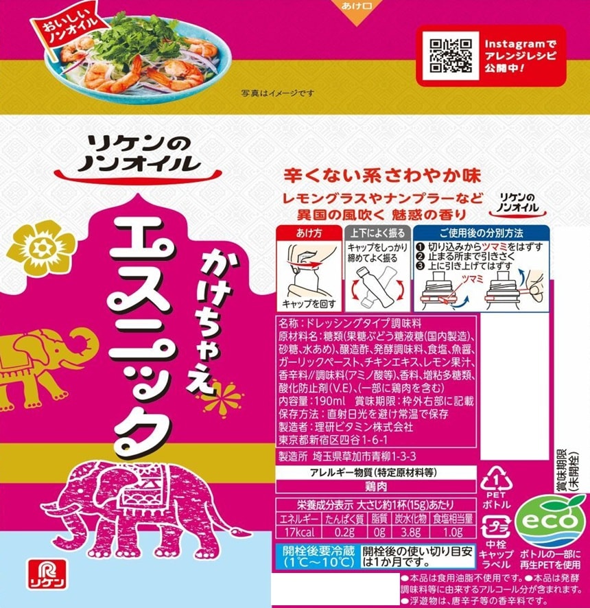 - リケンのノンオイル かけちゃえエスニック 190ml■